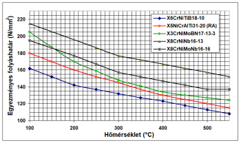 - h) Ötvözetlen, gyengén ötvözött csőanyagok folyáshatára [7.70]