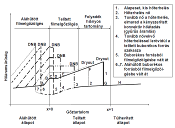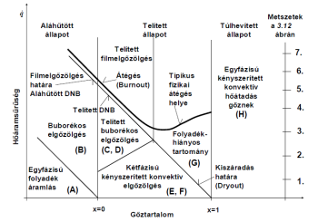 A B és G szakaszok között az áramlás kétfázisú, ebben a szakaszban a legrosszabb hőátadási tényező a felület kiszáradásakor, a dry-out (DO) pontban áll elő. Ennek következménye a falhőmérséklet ugrásszerű növekedése. A kiszáradás nem egyszerre következik be, hanem azt megelőzően a csőfelületen, rövid szakaszon instabil filmelgőzölés alakul ki, így a csőfelületnek ez a része nemcsak magas hőmérsékletnek, hanem erős hőmérséklet-ingadozásnak is ki van téve. Stabil filmelgőzölés, illetve a felület kiszáradása csak akkor áll elő, ha a felületi hőmérséklet a kritikus értéket elérte.