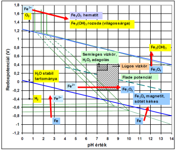 Jobban magyarázza a viszonyokat, hogy a nem kellően kondicionált (Flade-potenciál alatti) környezetben nem tud stabil védőréteg kialakulni, így folyamatosan Fe2+ ionok mennek oldatba, amelyet az áramlási eróziós hatások gyorsítanak. Ugyancsak gyorsítják a folyamatot a jelen lévő más ionok is.