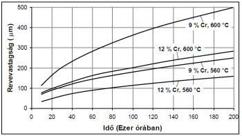 Lineáris növekedés – hosszabb üzemidő után végzett vizsgálatok szerint úgy tűnik, hogy a magnetitréteg képződése (elsősorban nagyobb karbontartalmú acéloknál [4.108]) az üzemidővel arányos, a képződési sebesség: