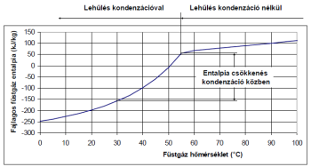 5.3. A füstgáz fajlagos entalpia–hőmérséklet diagramja