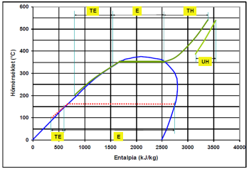 a frissgőz fajlagos entalpiája [kJ/kg],