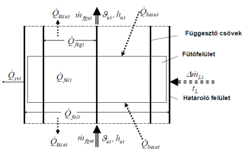 a térrészben elhelyezett fűtőfelület hőfelvétele [kW],