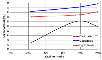 kazánhatásfok (esetleg egyedi veszteségek).