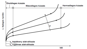 Az anyag terhelését követően (a szakítódiagramnak megfelelően) azonnal rugalmas, majd a diszlokációk átrendeződésével képlékeny alakváltozás következik be. A tartós igénybevétel hatására megkezdődik az anyag felkeményedése, amely fokozatosan csökkenő sebességű nyúlással jár. A folyamatnak ezt a szakaszát elsődleges vagy átmeneti kúszásnak nevezik.