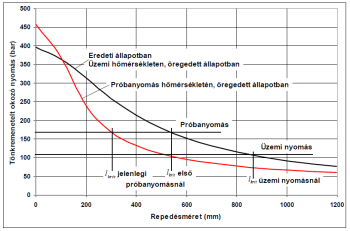 A várható kopásra tekintettel alkalmazott esetleges nagyobb falvastagság-pótlék nagyobb kezdeti próbanyomást tenne szükségessé, a későbbiekben az időszakos vizsgálatoknál az anyagfogyástól függően a próbanyomás értékét rendszeresen csökkenteni kellene.