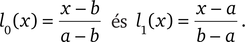Ez egy zárt formula két alapponttal: x0 = a és x1 = b. A két alappontra elsőfokú Lagrange-interpolációt végzünk, az alappolinomok: