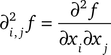 az f függvény i-edik parciális deriváltjának j-edik parciális deriváltja | |