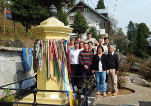 Az expedíció tagjai Kőrösi Csoma Sándor sírjánál, Dardzsilingban