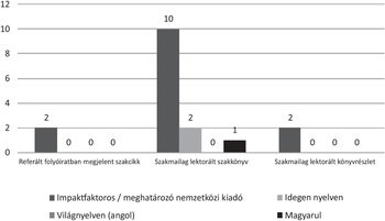 A CSFK-nál a szakcikkek tekintetében például látszólag a nyelvi semlegesség elve érvényesül, hiszen csupán impaktfaktoros és nem impaktfaktoros közleményeket különböztet meg, ez utóbbi viszont „független a közlemény nyelvétől”. Ennek értelmében, bár a legtöbb impaktfaktoros folyóirat angol nyelvű (2-es súlyfaktor), de önmagában az angol nyelven írt publikáció, ha az nem impaktfaktoros folyóiratban jelenik meg, nem ér többet, mint a magyar vagy más nyelven elkészített írás (0,5-es súlyfaktor) (3. ábra). A nyelvi semlegesség azonban csak látszólagos, mivel a kutatói nyelvválasztási döntés abból indul ki, hogy ha a magasabb pontszámot kívánja megcélozni a kutató (s miért ne tenné?), akkor eleve angolul készíti el publikációját, mely végül lehet, hogy csak a pontszámilag kisebb értékű nem impaktfaktoros folyóiratban jelenik meg, viszont ha magyarul készíti, akkor eleve kizárja magát a magasabb kategóriából, mivel nincs magyar nyelvű impaktfaktoros folyóirat.