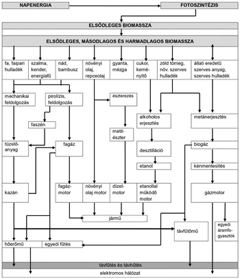 - Elsődleges biomassza: a természetes elődleges produkció (fotoszintézis) során, autotróf szervezetek tevékenységéből származik: természetes vegetáció, szántóföldi növények, erdő, rét, legelő, kertészeti növények, vízben élő növények.
