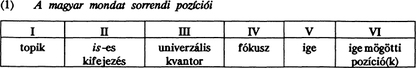 A magyar mondatnak a szórend szempontjából fontos szintaktikai pozíciói leíró szempontból a következők: