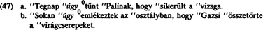 Semleges értelmű mondatban nemcsak az azt utalószó jelenhet meg a HKM környezetében, hanem az úgy is: