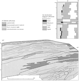 13 A Vas-hegy Gloriette csúcsa alatti felhagyott kőfejtő; a gneiszesedett gránitintrúzió („injekciós gneisz”) típusfeltárása