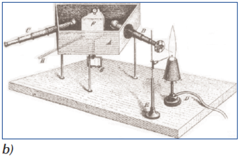 10.5. ábra. A spektrum keletkezése a) és az első spektroszkóp felépítése