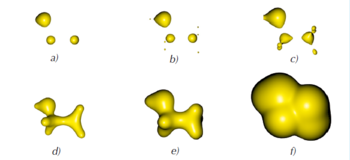 11.46. ábra. Az etil-alkohol alakja különböző elektronsűrűség-határok mellett