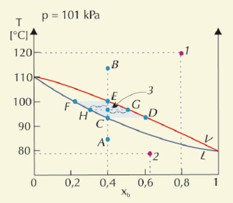 5.78. ábra. A benzol-toluol elegy T–x diagramja