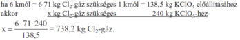 Most már jól látható, hogy 6 mól Cl2 szükséges 1 mól KClO4 előállításához.