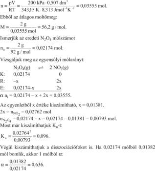 A tökéletes gáztörvény alapján az egyensúlyi összmólszám egyszerűen számítható: