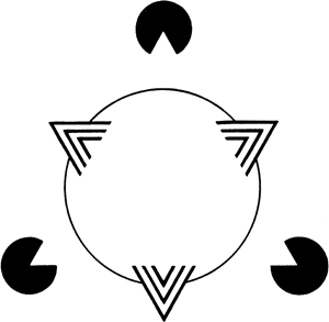 9.7. ábra. Látja-e az Olvasó a fehér háromszöget a másik háromszög felett, amelyet a kör tart? A fehér háromszög határai nincsenek mindenhol berajzolva, az agyban vannak azonban olyan sejtek, amelyek reagálnak e láthatatlan, de érzékelt vonalakra