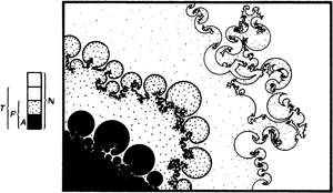 4.3. ábra. Propozíciók különböző halmazai nagyon vázlatosan ábrázolva. A rendszeren belül bizonyítható propozíciók P halmaza rekurzívan felsorolható, de nem rekurzív; az igaz propozíciók T halmaza még csak nem is sorolható fel rekurzívan.
