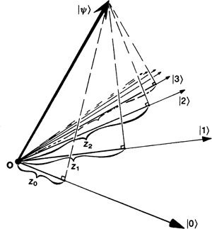 6.22. ábra. A |ψ〉 állapot |0〉, |1〉, |2〉, … tengelyekre eső merőleges vetületeinek nagyságai adják a kívánt z0, z1, z2, … amplitúdókat