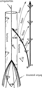 7.13. ábra. Fekete lyukká való kollapszust ábrázoló téridődiagram